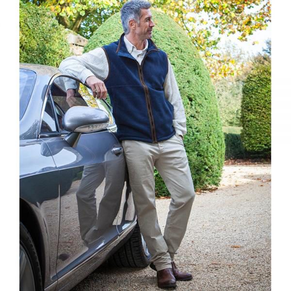 Luxurious Fleece Gilet with Alcantara trim Two-zip security pockets. Adjustable Drawcord at the hem. Machine Washable and quick drying.