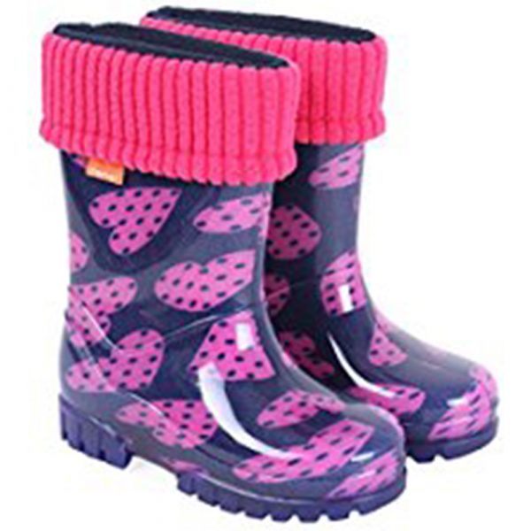 Plastic childrens wellington with thermal removal sock.